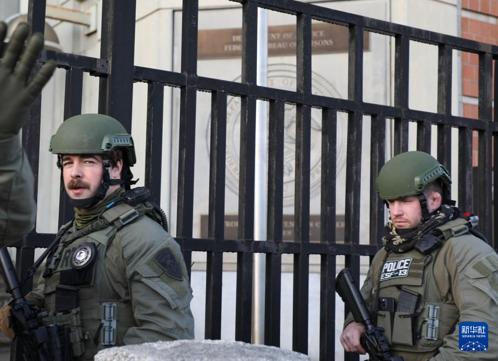 1月7日,警卫人员在美国纽约布鲁克林区的大都会拘留中心外巡逻。