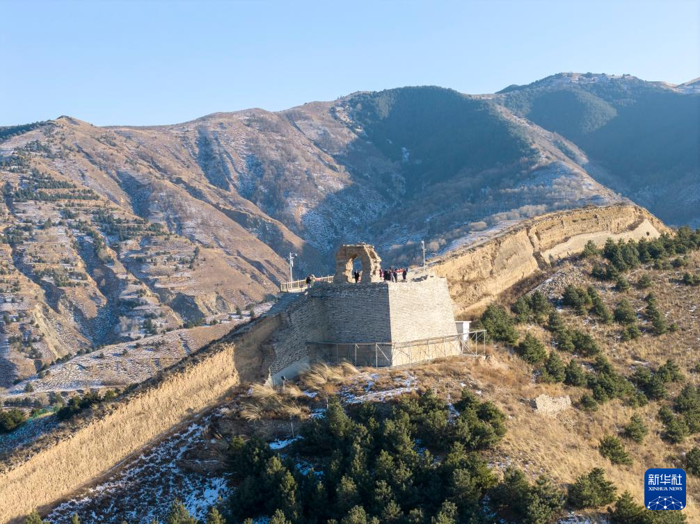 游客参观位于朔州市山阴县的广武长城(无人机照片,1月6日摄)。