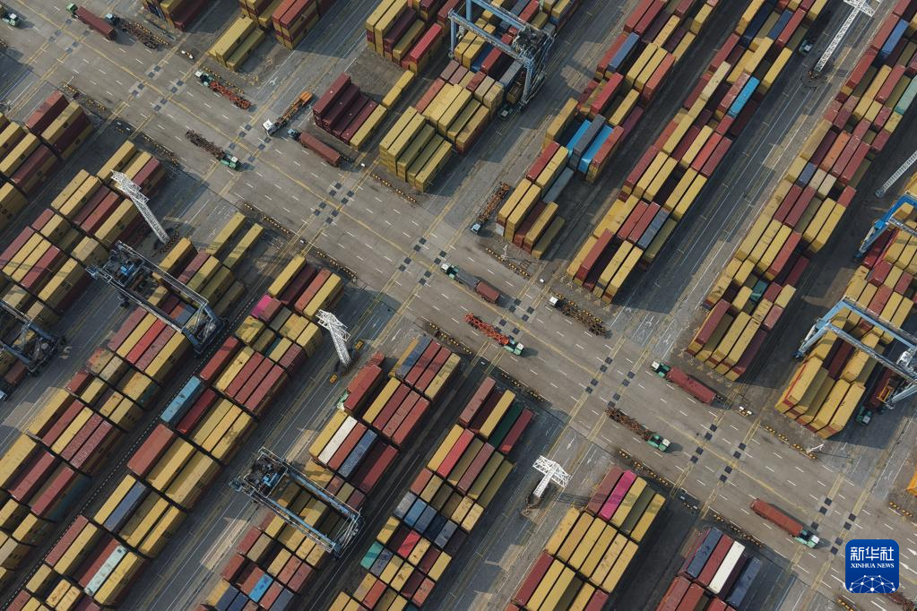 这是2026年1月8日拍摄的宁波舟山港穿山港区集装箱码头货场(无人机照片)。