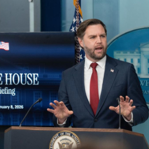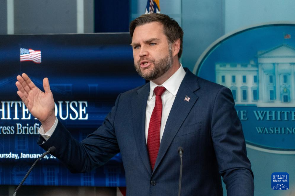 1月8日,在美国首都华盛顿白宫,美国副总统万斯回答记者提问。