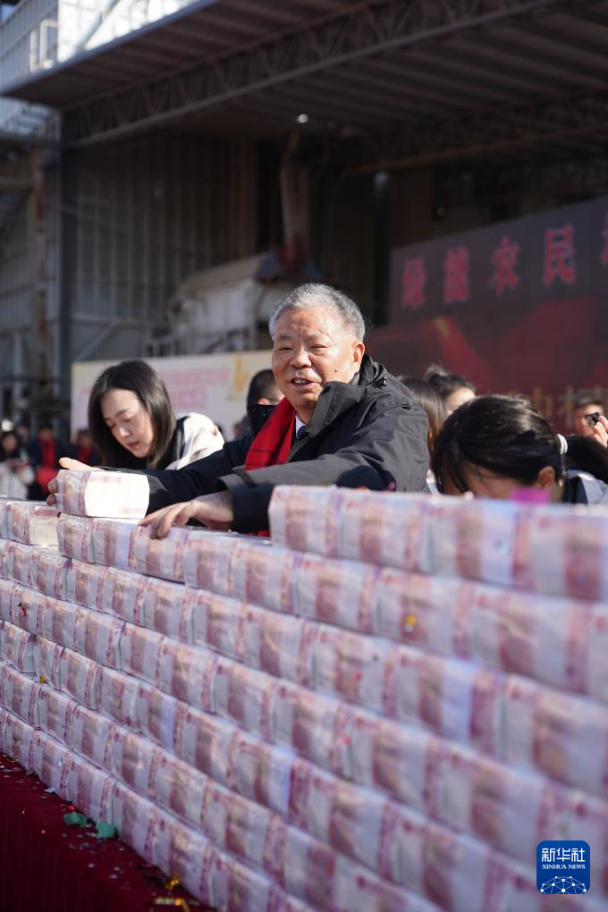 1月9日,江西省南昌市安义县的种粮大户凌继河给种粮能手和员工发放2129万元年终奖。这是凌继河连续15年给农民发放年终奖,奖金总额累计达9099万元。