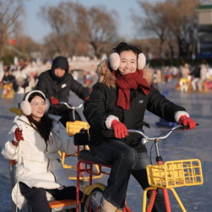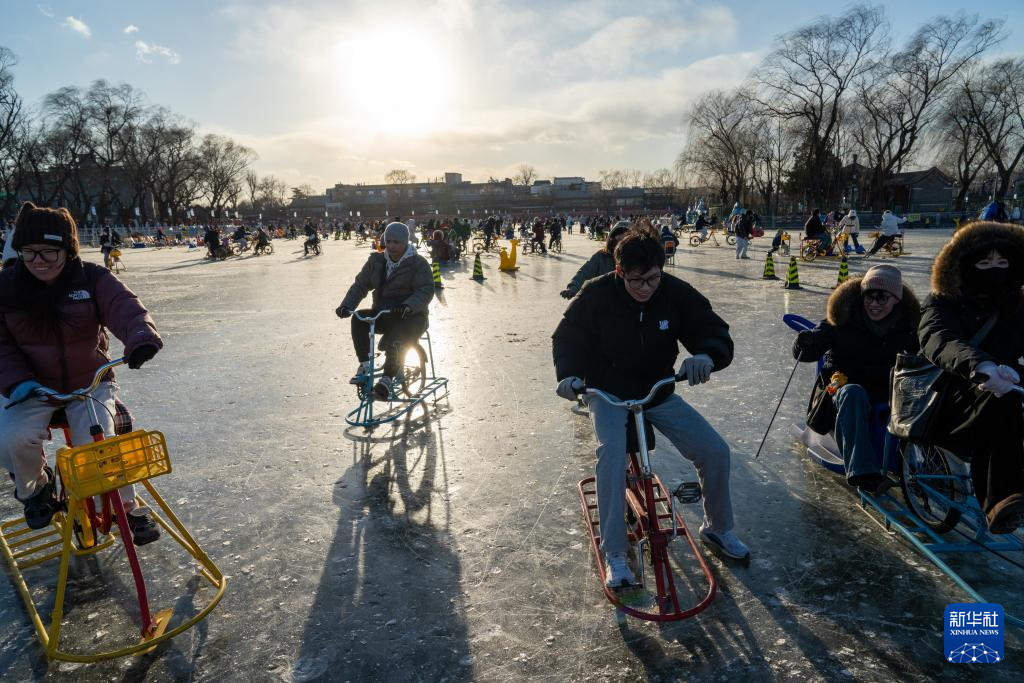1月10日,北京什刹海前海冰场正式营业,吸引众多游客到此休闲游玩。受气温影响,冰场目前开放的是前海区域。前海冰场运营面积为3.5万平方米,营业时间为8点至21点。