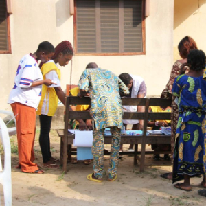 1月11日,在贝宁维达市一处投票点,选民参加投票。