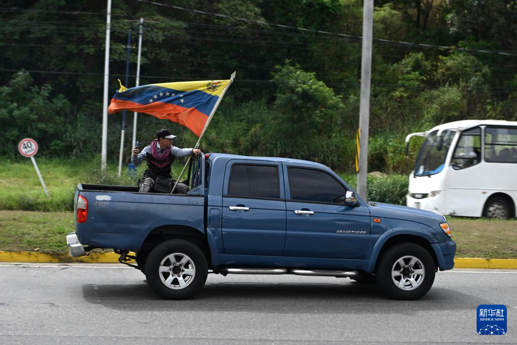 1月13日,一名男子在委内瑞拉加拉加斯乘坐皮卡参加示威活动,抗议美国对委内瑞拉发动军事打击。
