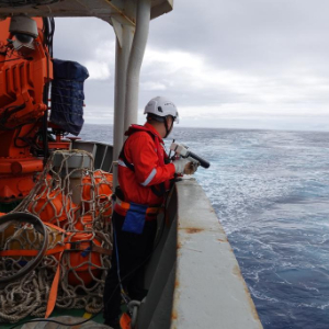 船时1月16日,“雪龙”号大洋队队员手持发射器,向海中投放抛弃式温深仪。