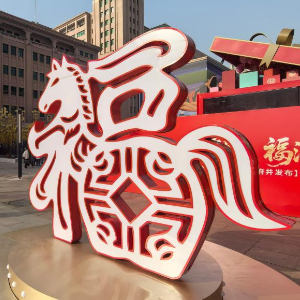 西单商业街上商家摆出的马年吉祥物(1月16日摄)。