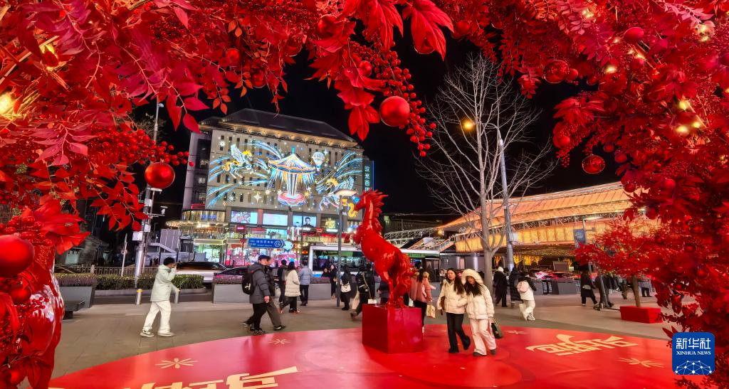 节日氛围浓厚的西单商业街(1月16日摄)。