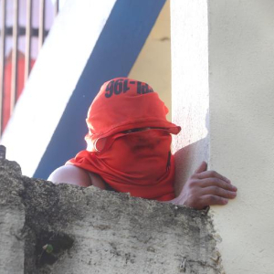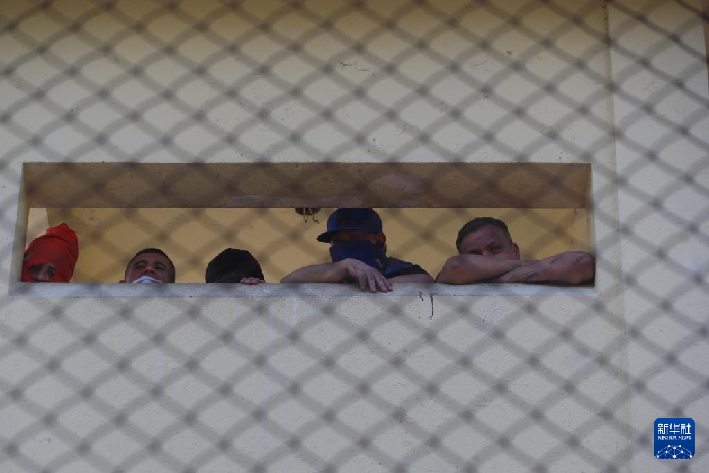 1月17日,囚犯在危地马拉弗赖哈内斯一所监狱查看骚乱情况。