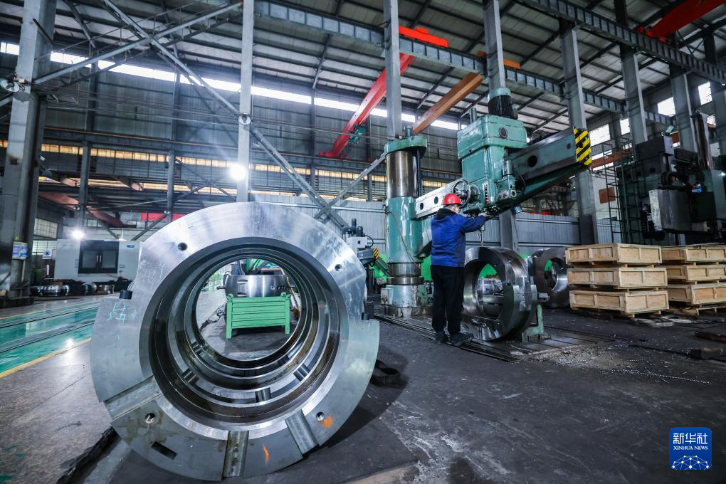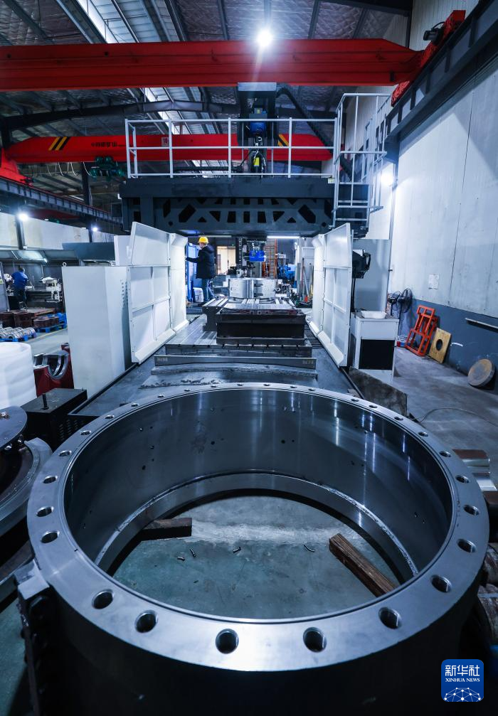 1月20日,在诸暨市璜山镇的浙江申发轴瓦股份有限公司数字化车间内,工人操作设备加工轴承。