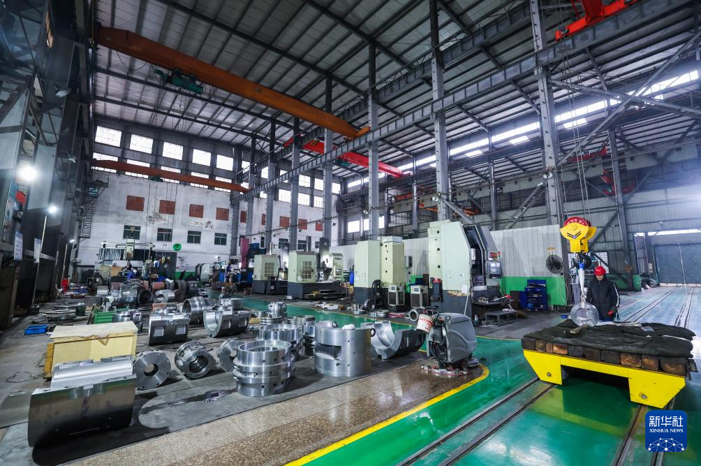 1月20日,在诸暨市璜山镇的申科滑动轴承股份有限公司轴瓦自动产线区内,自动化流水线在加工轴瓦。