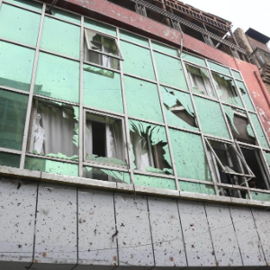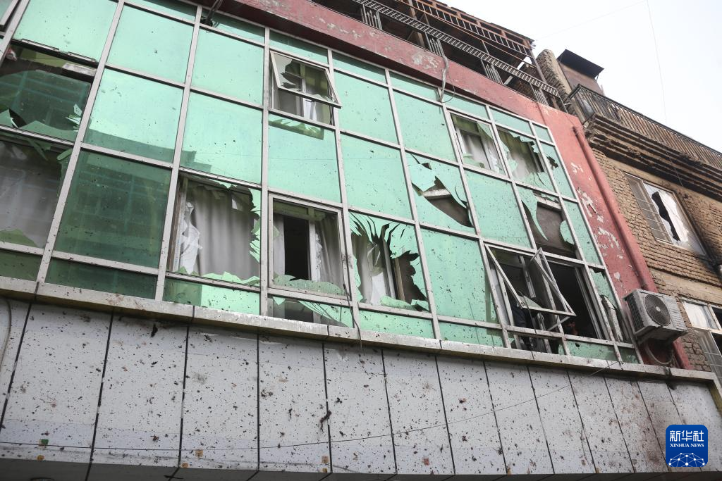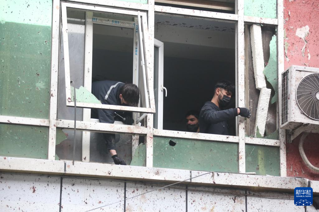 这是1月20日在阿富汗首都喀布尔拍摄的被爆炸波及的建筑。