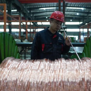 1月20日,在江西瑞金金字电线电缆有限公司车间内,工人监测生产情况。