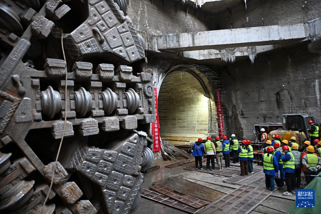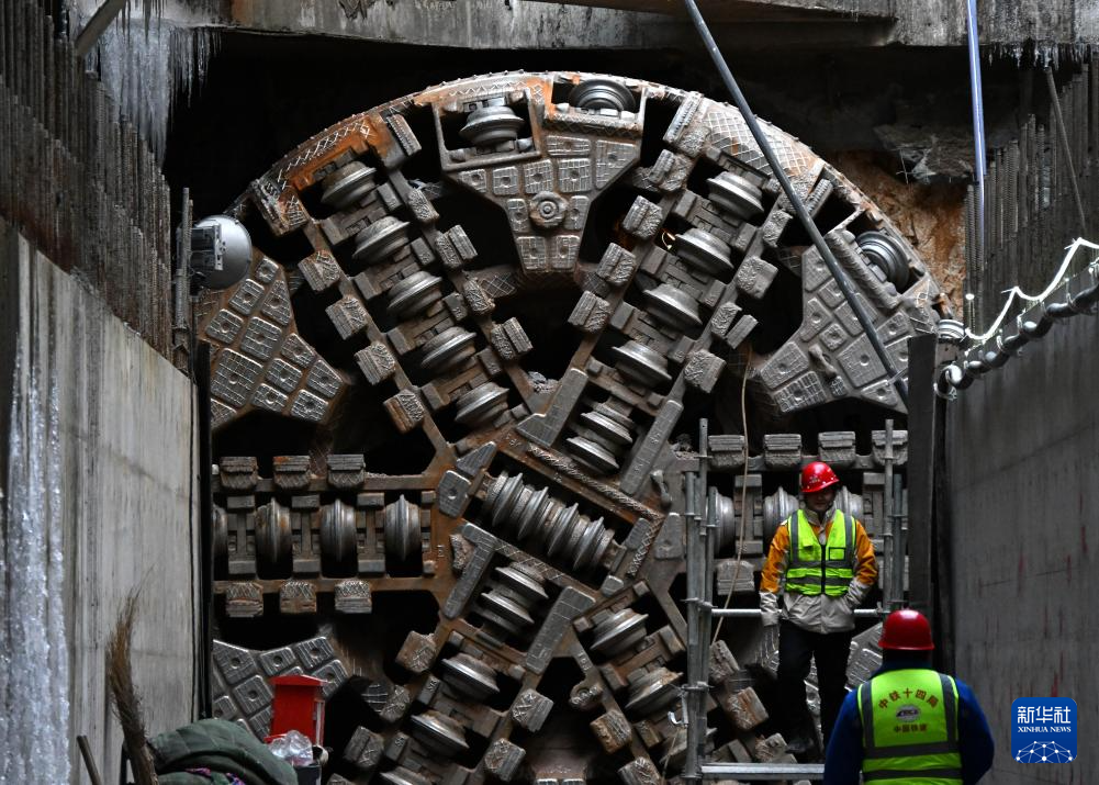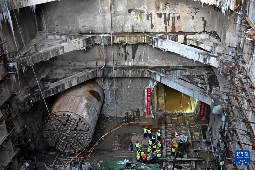 1月21日,建设者在青岛地铁5号线四方厂站接收井等待右线贯通。