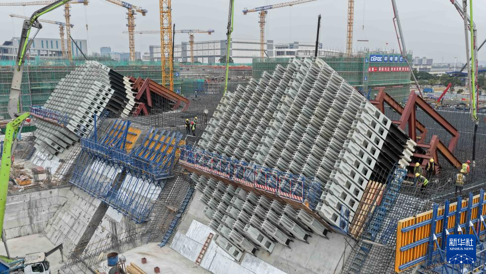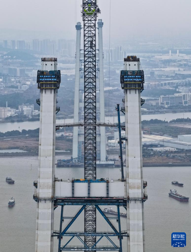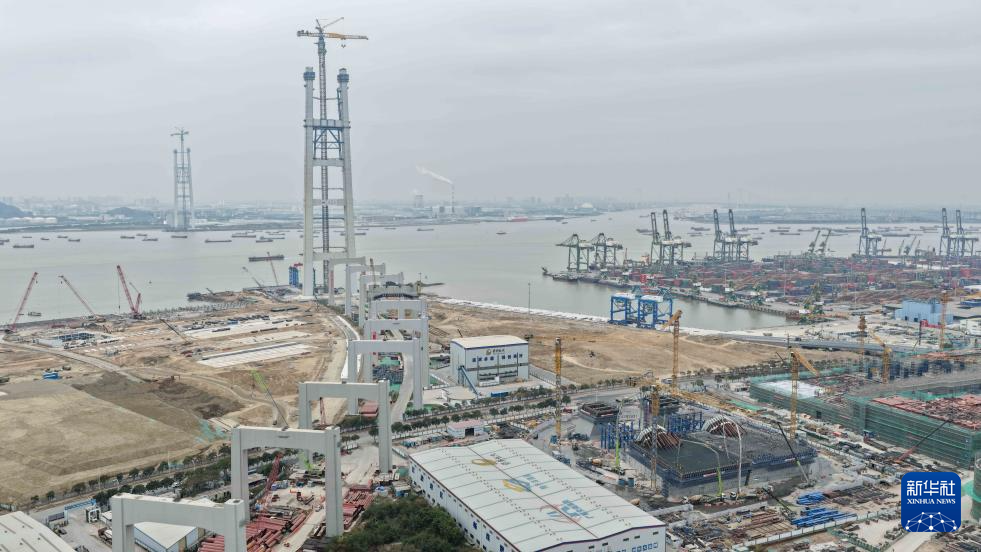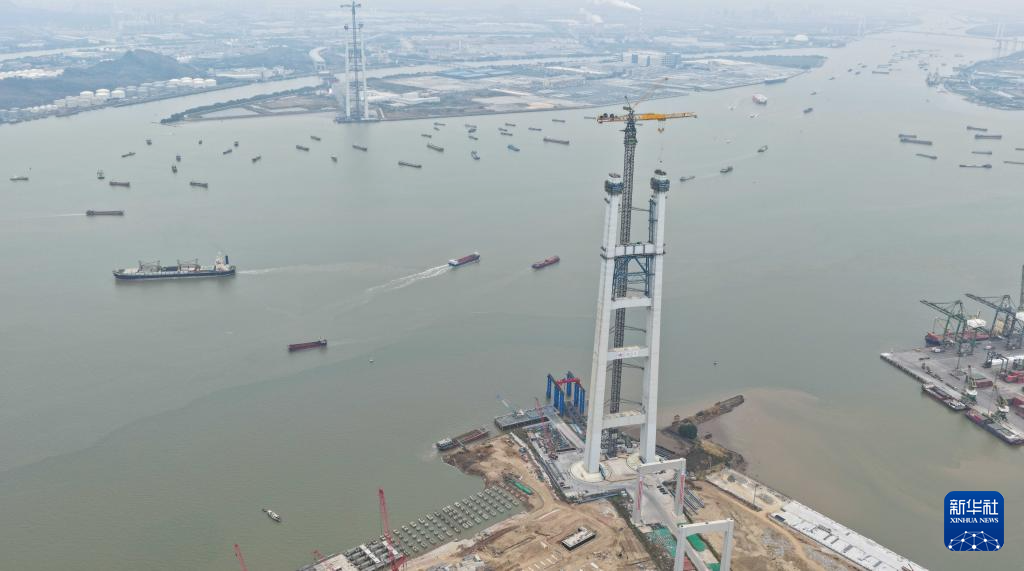 粤港澳大湾区狮子洋通道主桥桥塔突破300米-新华网