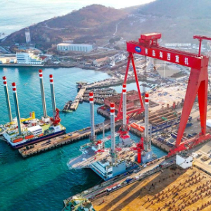 1月22日,由中船武汉船机海西重机自主设计建造的两座新一代“海上移动岛”——TYPE3 PRO型自升式海上作业支持平台,从青岛西海岸新区启航,发往中东波斯湾海域交付。该型平台集作业高效、绿色环保与网络安全等先进性能于一身。