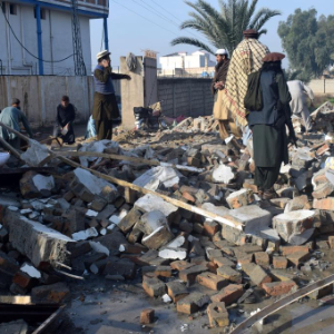 1月24日,在巴基斯坦西北部开伯尔-普什图省德拉伊斯梅尔汗地区,人们检查爆炸现场。