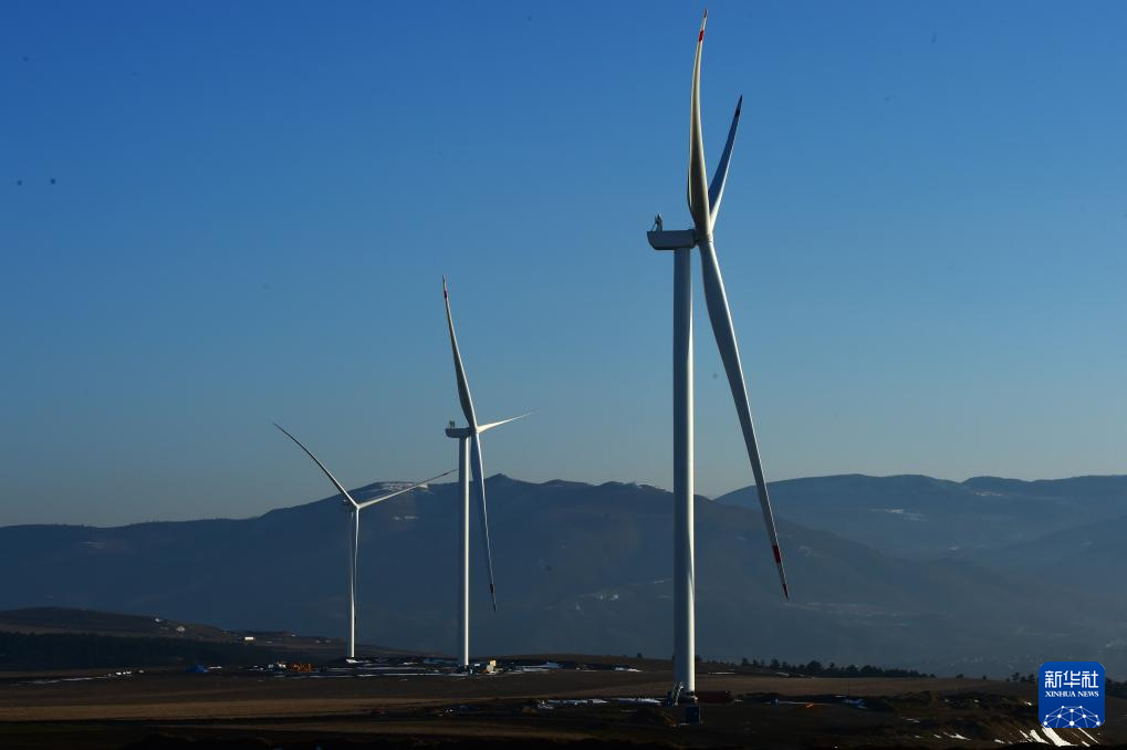这是1月29日在格鲁吉亚什达-卡尔特里大区鲁伊西风电项目拍摄的已经安装完毕的风机。