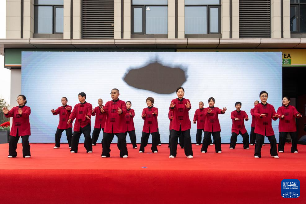 2月3日,在长沙市望城区大泽湖街道金星北路社区,市民表演太极。