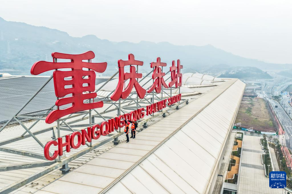 2月3日,鲁奇在重庆东站站房屋顶紧固螺栓。