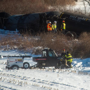美国东部时间2月5日上午,一列载有危险化学品的货运列车在美国东北部康涅狄格州曼斯菲尔德镇附近脱轨,部分车厢滑入铁道旁一条河中。当地官员表示,尚未发现危化品泄漏,事故没有造成人员伤亡。