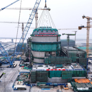 2月10日,位于辽宁省葫芦岛市的徐大堡核电站1号机组核岛钢制安全壳顶封头吊装就位,标志着该机组建设从土建施工全面转入安装阶段。