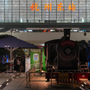 夜幕下的杭州东站东广场,四节复古绿皮车厢亮起暖黄色灯光,成为迎候夜间出行旅客落脚休息的一片“暖心港湾”。