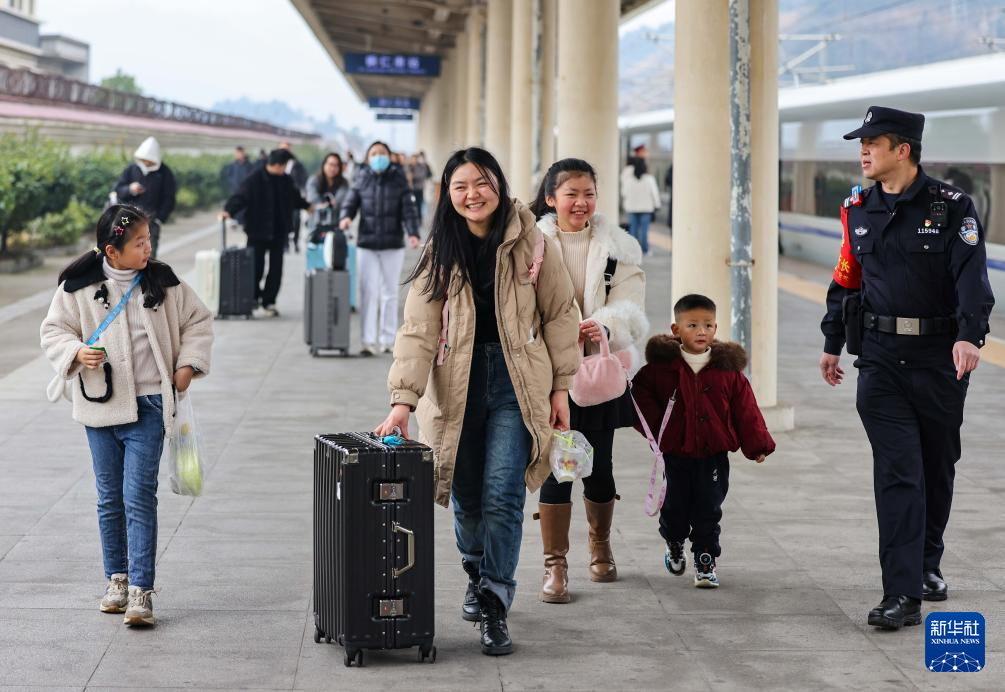 2月2日,旅客在沪昆高铁贵州铜仁南站转乘。