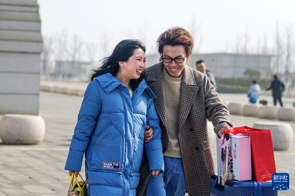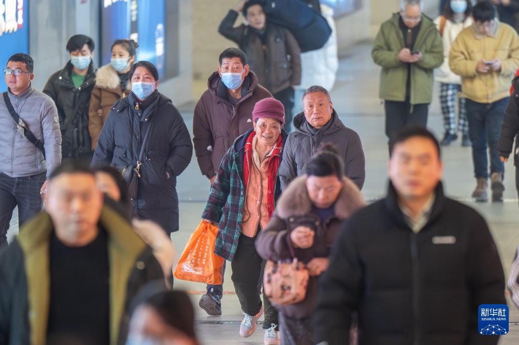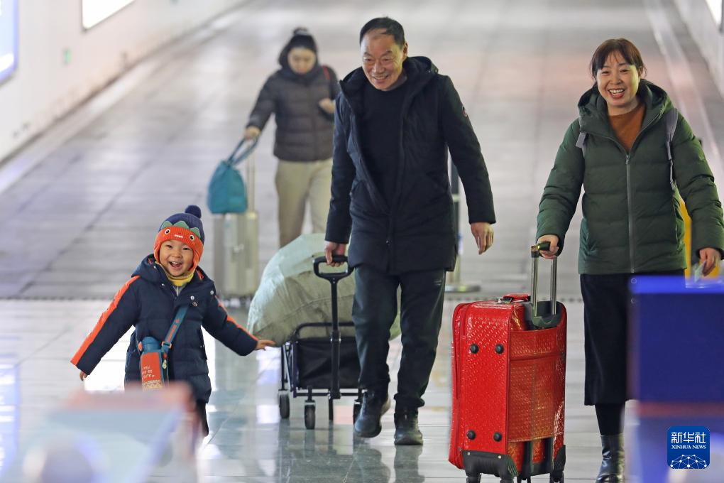 2月2日,旅客从山东胶州北站出站。