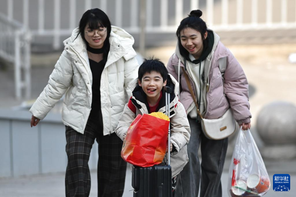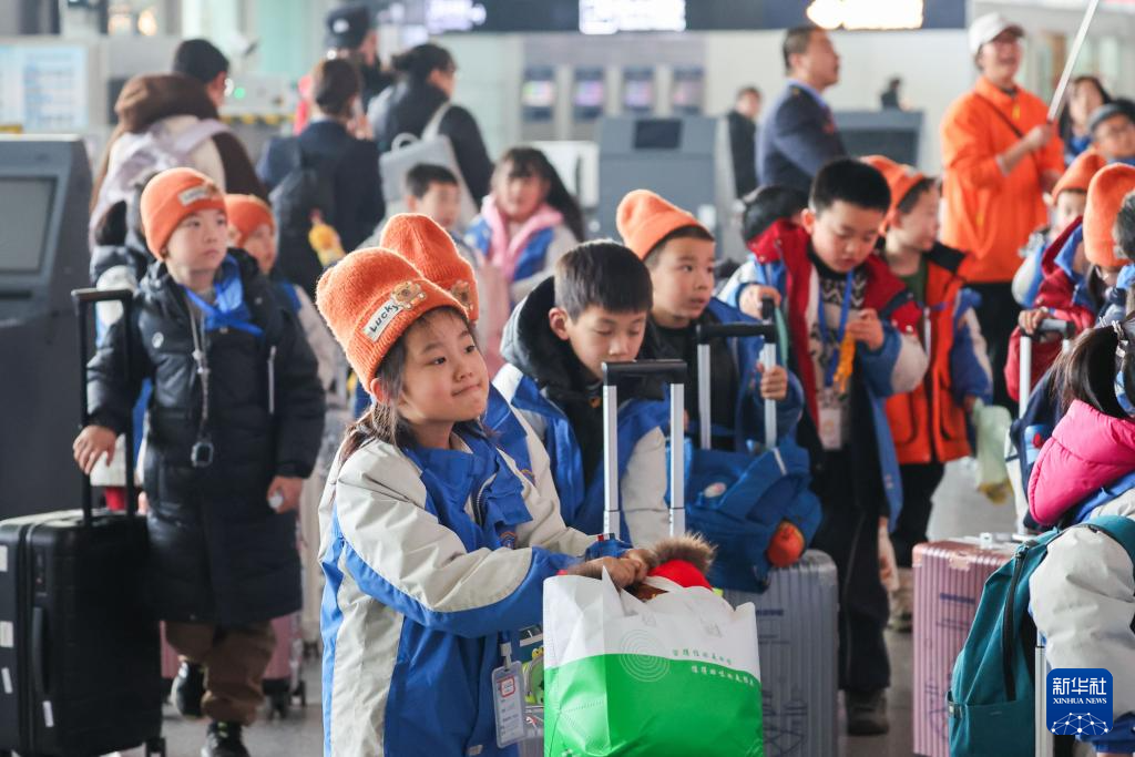 2月2日,参加研学的小朋友在西安北站进站候车。