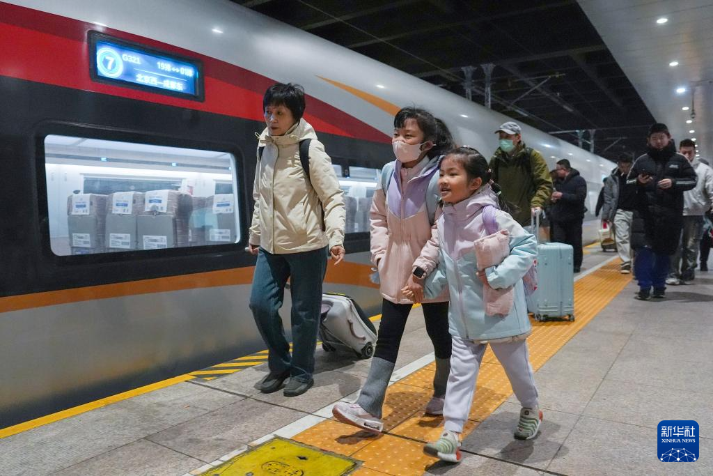 2月2日,在北京西站,小朋友跟随姥姥、姥爷准备乘坐G321次列车回老家。