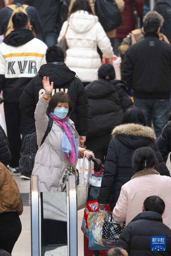 2月2日,在深圳北站,旅客与送站的亲人挥手道别。
