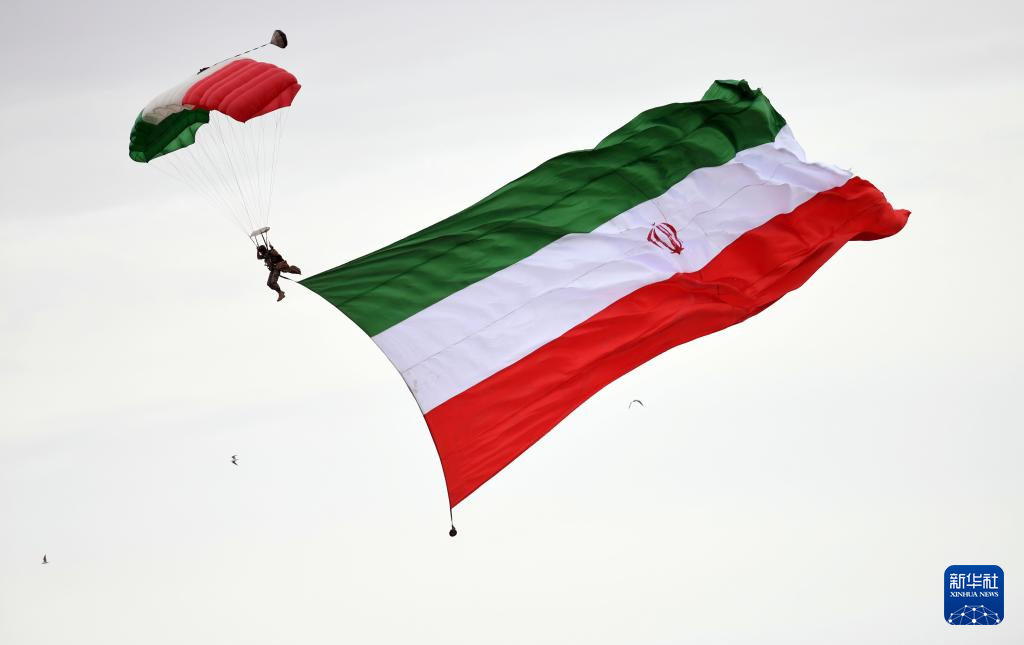 2月11日,在伊朗首都德黑兰阿扎迪广场,飞行员使用降落伞在纪念伊朗伊斯兰革命胜利47周年集会上表演。