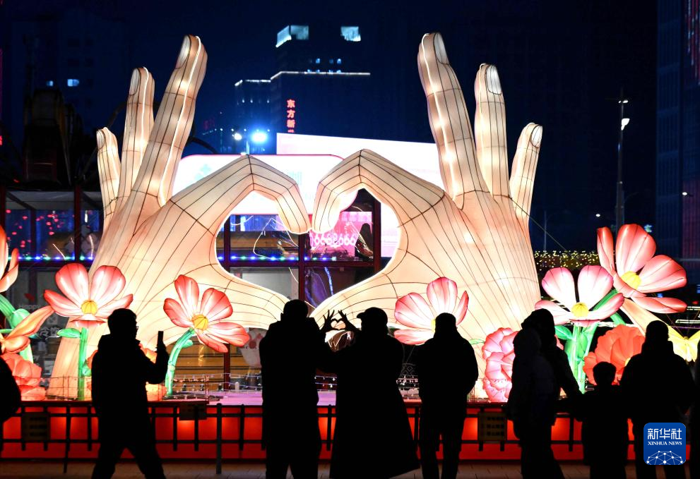 2月11日,市民在甘肃省定西市安定区新时代广场观赏花灯。