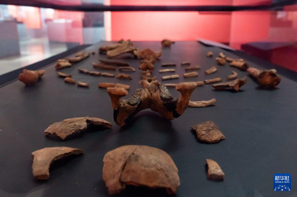 这是2月12日在埃塞俄比亚首都亚的斯亚贝巴的埃塞俄比亚国家博物馆拍摄的露西化石展品。