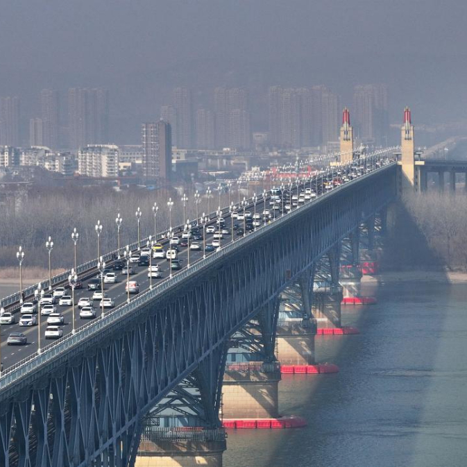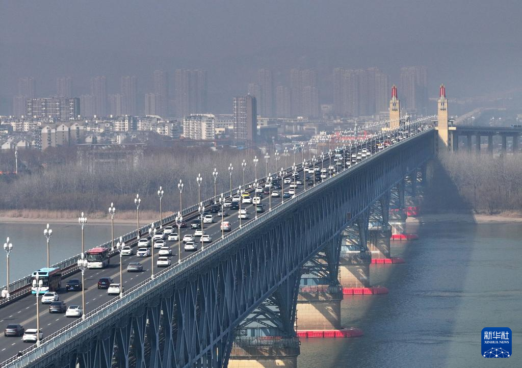 这是2月14日拍摄的南京长江大桥(无人机照片)。