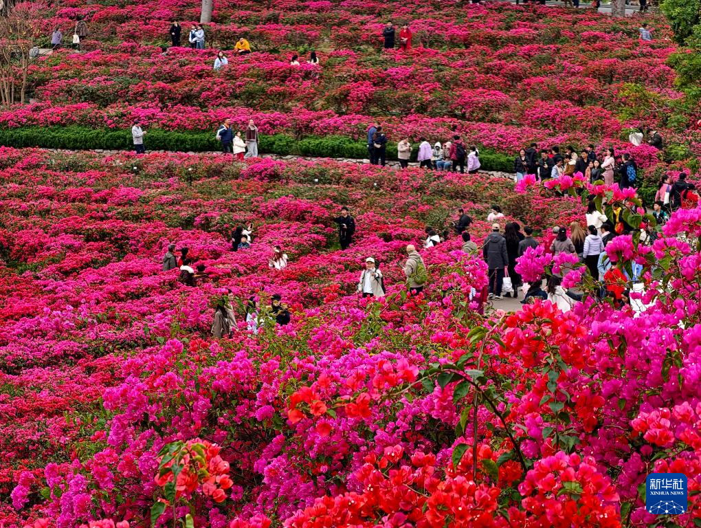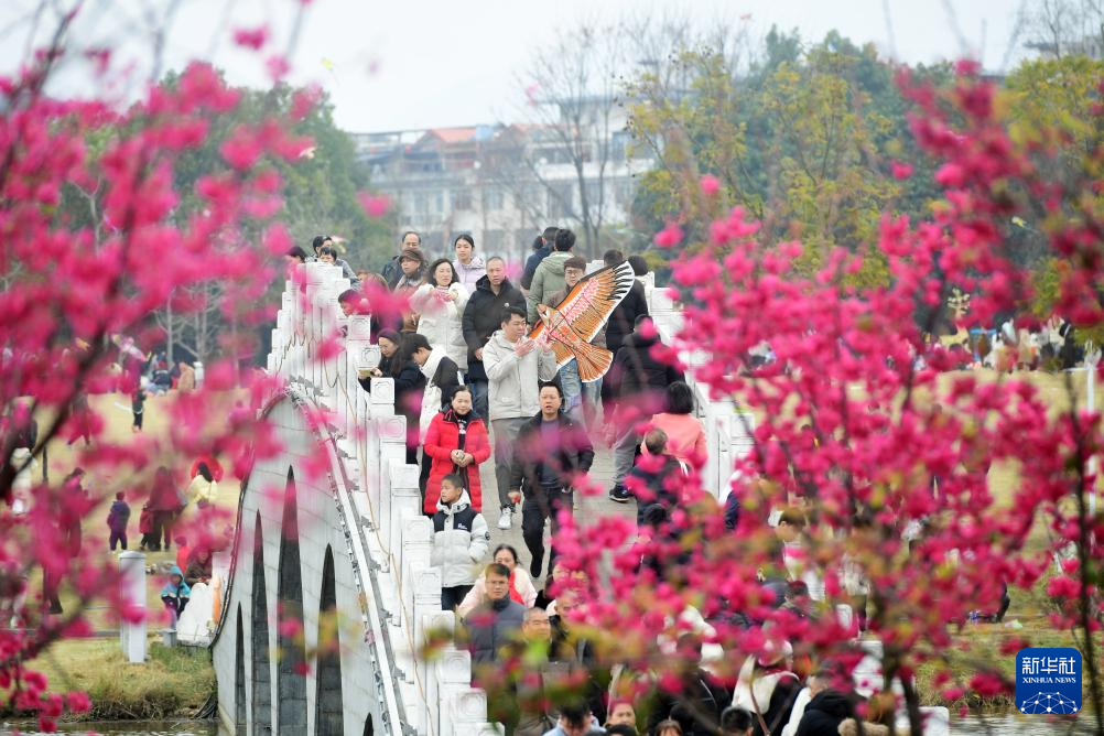 2月17日,游客在广西贺州市爱莲湖公园游览。
