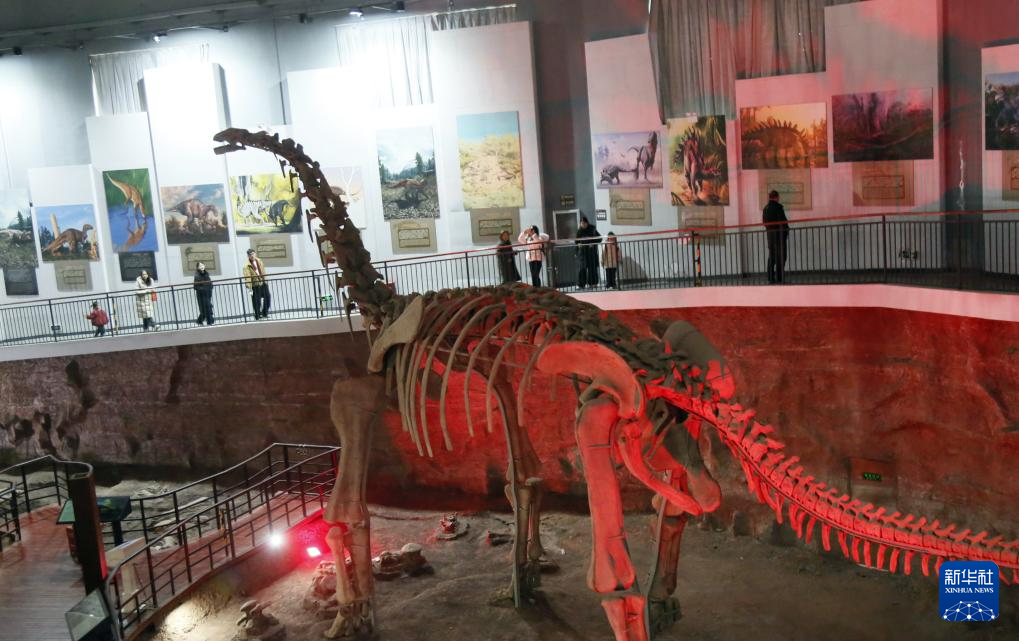 2月17日,游客在河南汝阳恐龙国家地质公园游览。