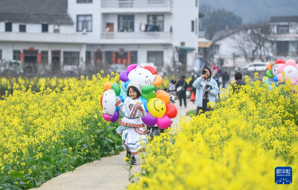 2月17日,游客在贵州省黔西南布依族苗族自治州兴义市万峰林景区的油菜花田里游玩。