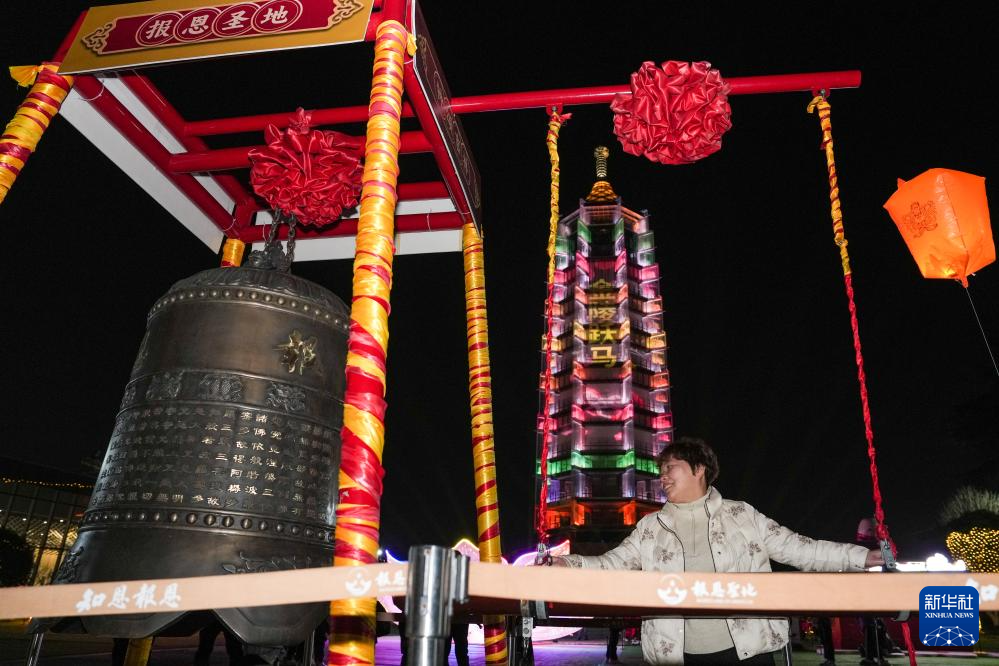 2月17日,市民在南京大报恩塔下撞钟祈福。