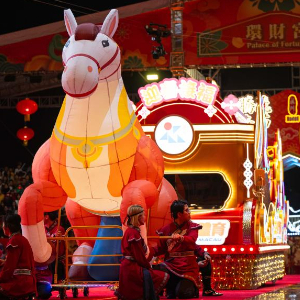 2月19日,澳门旅游局举办“骏马腾飞 欢乐春节 2026农历新年花车汇演”。