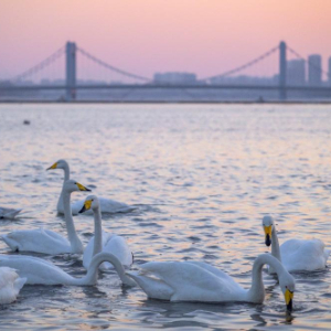 辽宁朝阳:大凌河畔 天鹅翩跹