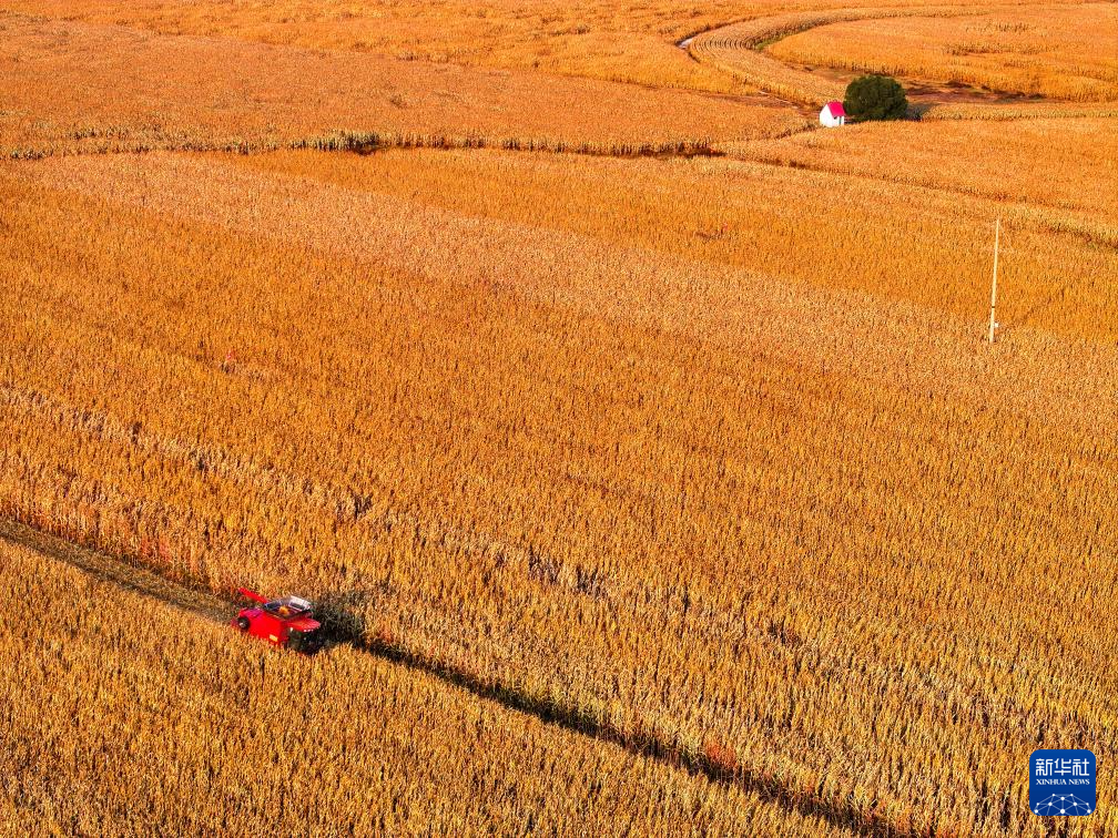农机手驾驶收割机在内蒙古自治区通辽市科尔沁区丰田镇收割玉米(2025年10月14日摄,无人机照片)。“十四五”以来我国锚定建设农业强国目标,扎实有力推进乡村振兴,保持了农业农村发展稳中有进、稳中向好的良好势头,为整个经济社会高质量发展提供有力支撑。