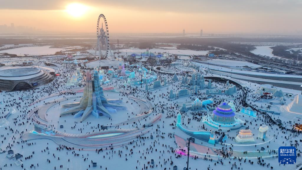 这是哈尔滨冰雪大世界园区(无人机照片,2024年12月21日摄)。“十四五”期间,多地冰雪经济崛起,划出了一条从人气积聚到品牌升级,从特色文旅到全产业链发展,向着新质生产力跃升的新曲线。