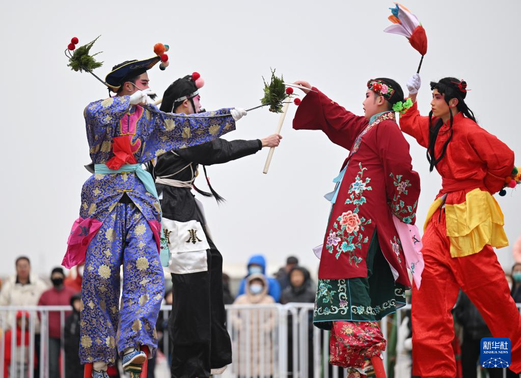这是2月28日在花会展演活动上拍摄的宜兴埠永长高跷。