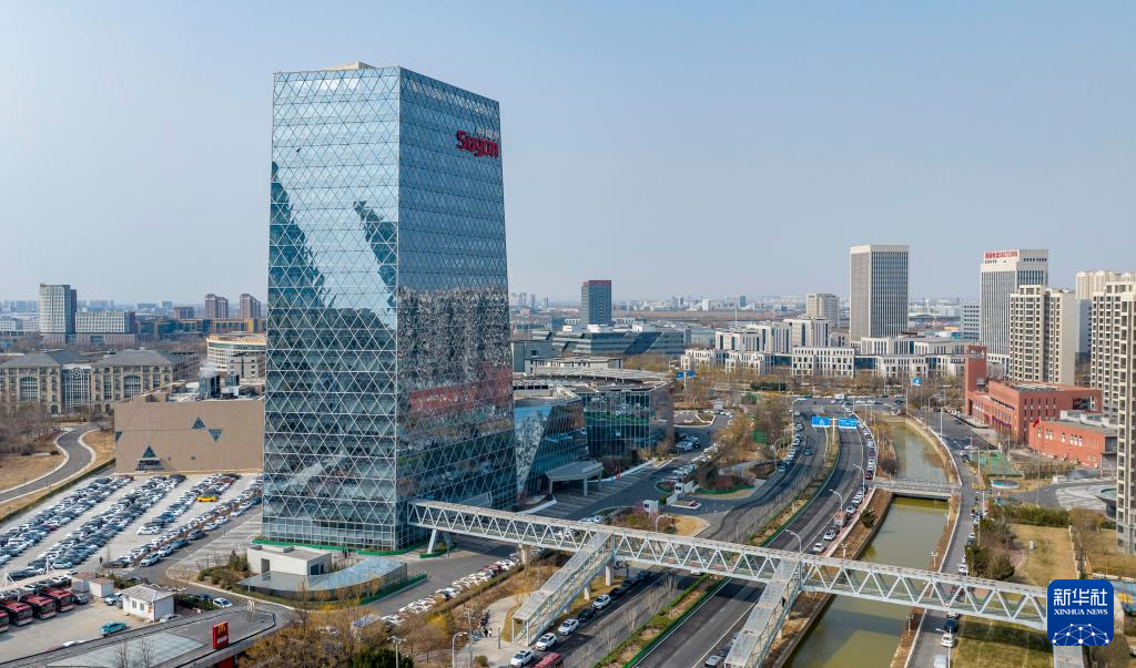 这是2月27日拍摄的天津滨海高新区华苑科技园(无人机照片)。