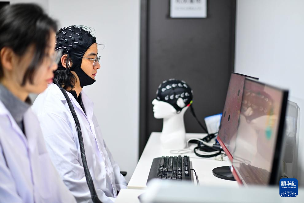 2月27日,在位于天津滨海高新区的中电云脑(天津)科技有限公司,工作人员进行脑机接口技术测试。