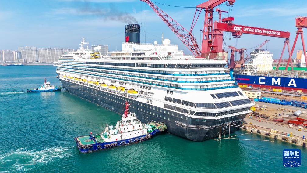 2月28日,“理想”号邮轮完成坞修及保养后准备驶离(无人机照片)。