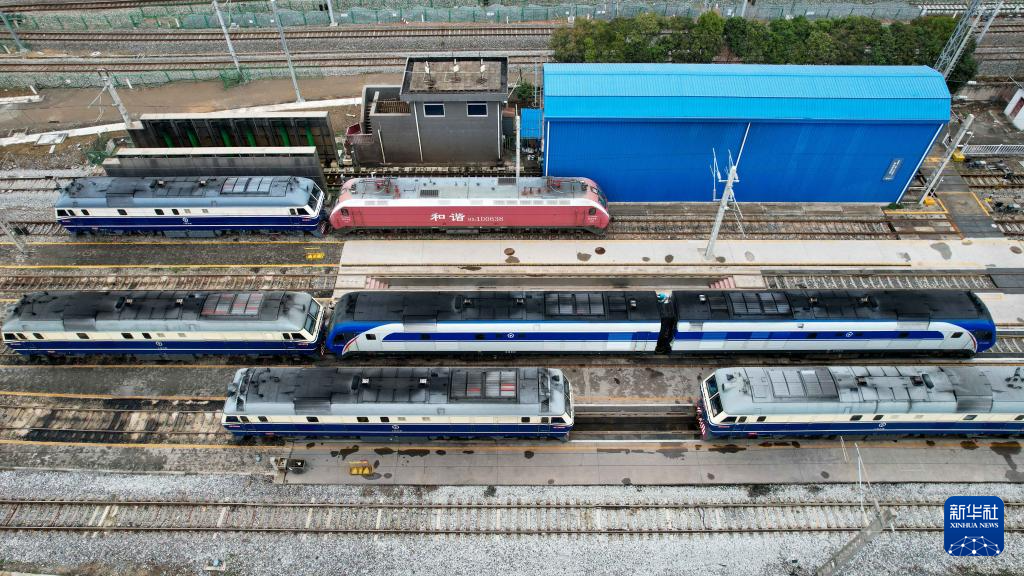 这是2月28日拍摄的停在合肥机务段合肥整备车间整备场的机车(无人机照片)。