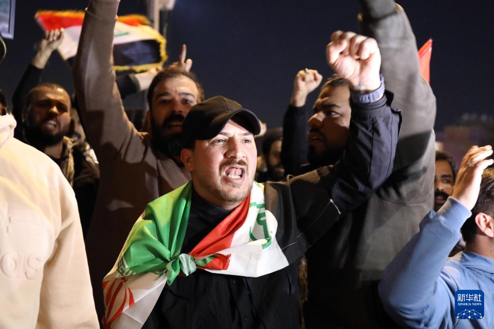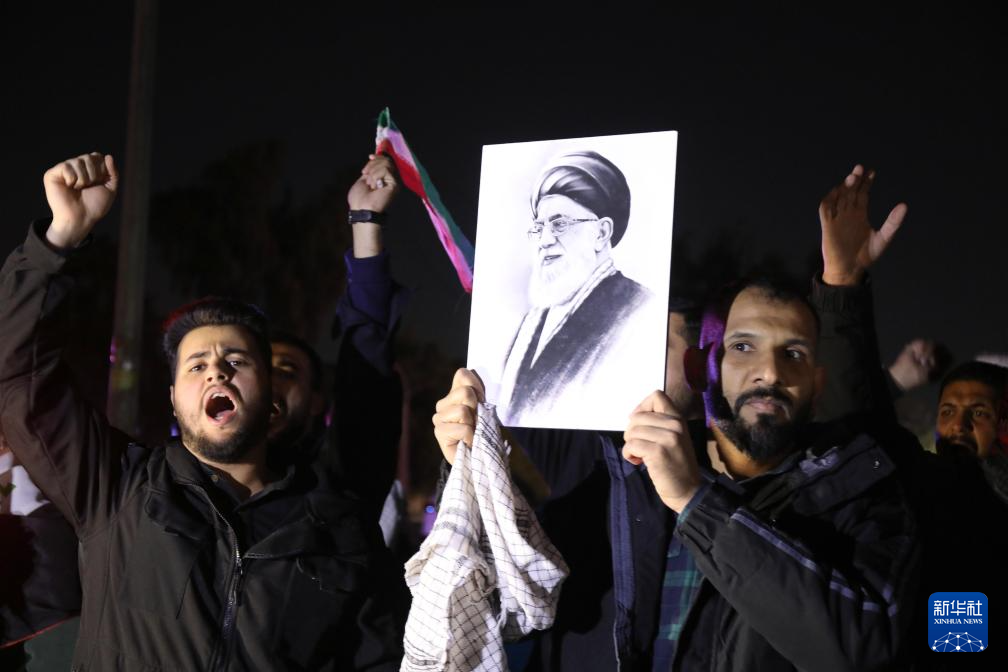 2月28日,民众在伊拉克首都巴格达举行示威,抗议美国和以色列军事打击伊朗。