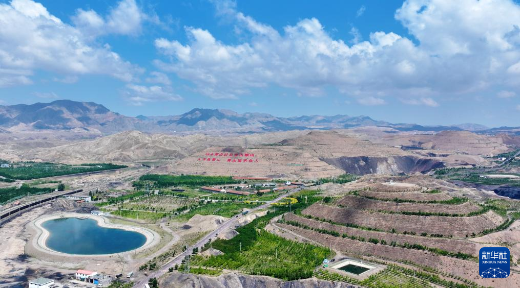 在宁夏石嘴山市大武口区石炭井,曾因过度开采而满目疮痍的矿山逐步恢复绿色“容颜”(2025年6月30日摄,无人机照片)。